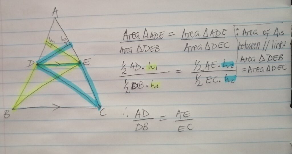 - This creates triangle DEC and DEB between parallel lines DE and BC
