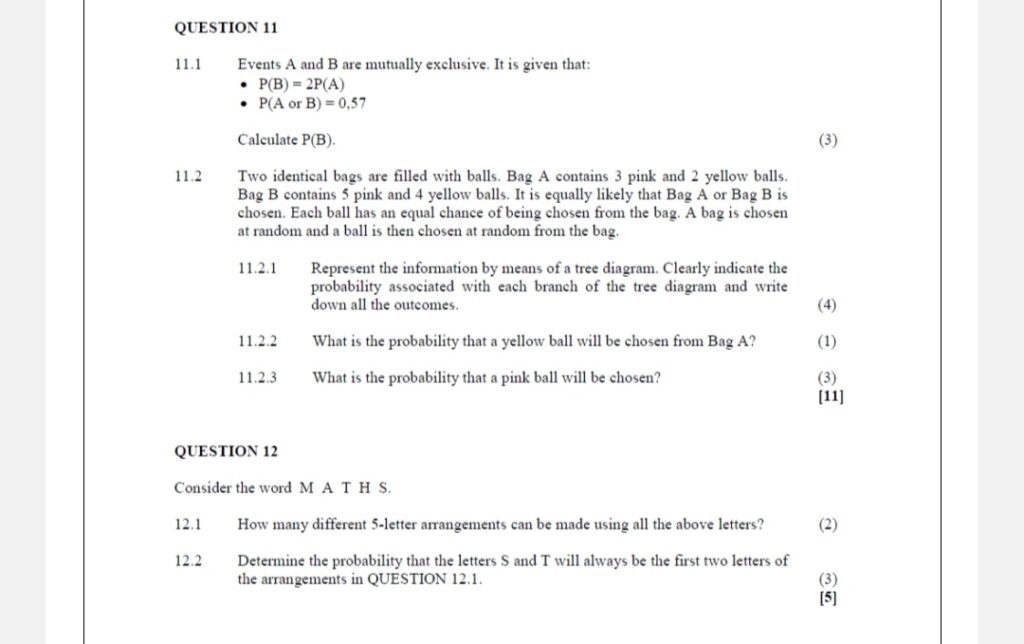 - Bag B has 9 balls, 5/9 pink and 4/9 yellow